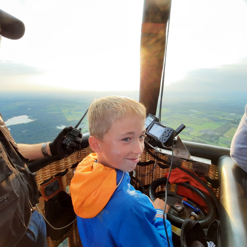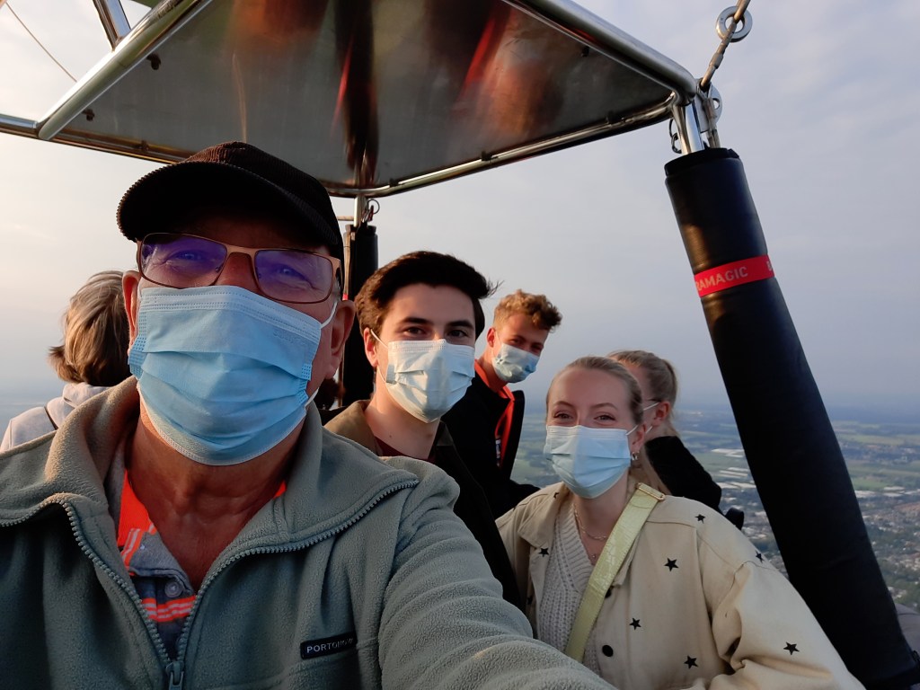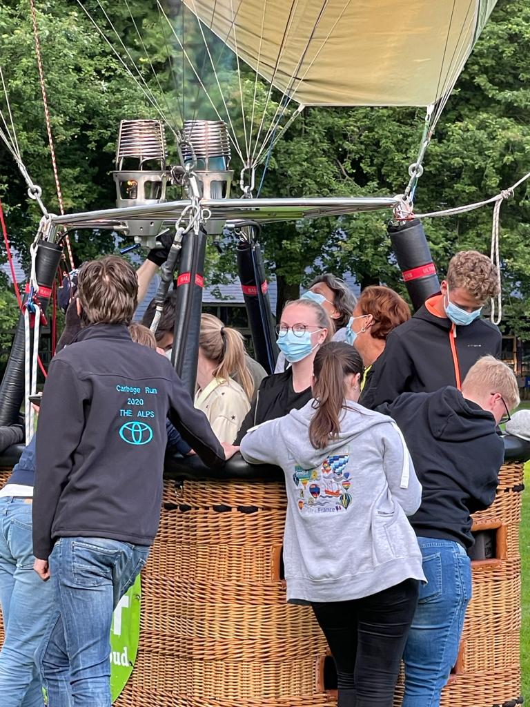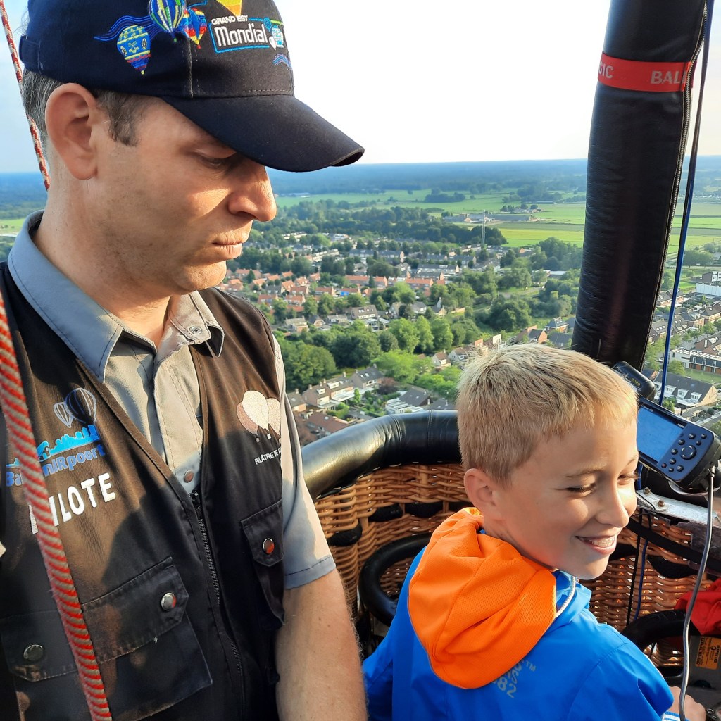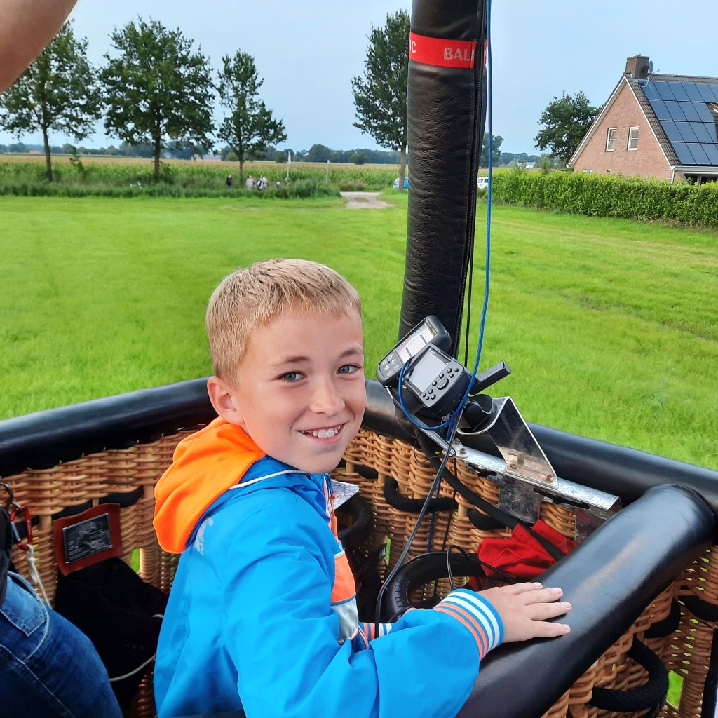 Allemaal in de ballon geklommen en Timo – benoemd tot co-piloot – mocht in het vak van de piloot Rud van Herk.