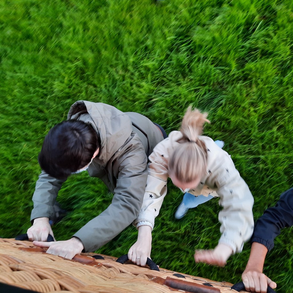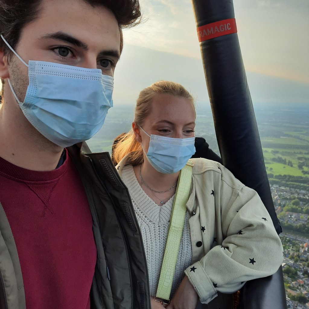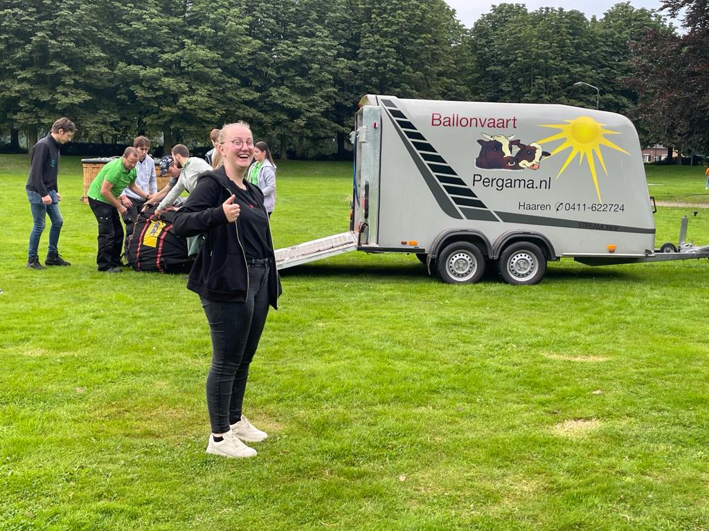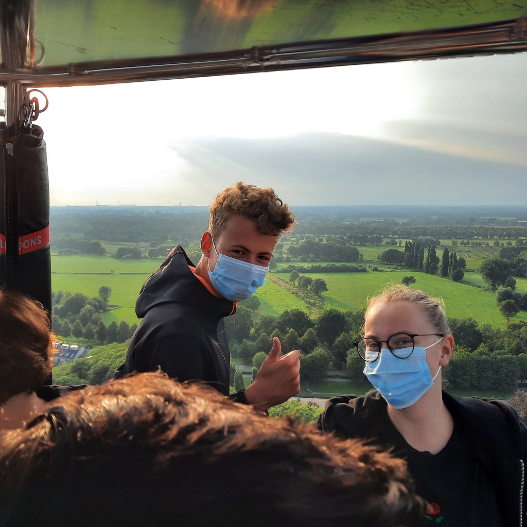 Allemaal in de ballon geklommen en Timo – benoemd tot co-piloot – mocht in het vak van de piloot Rud van Herk.