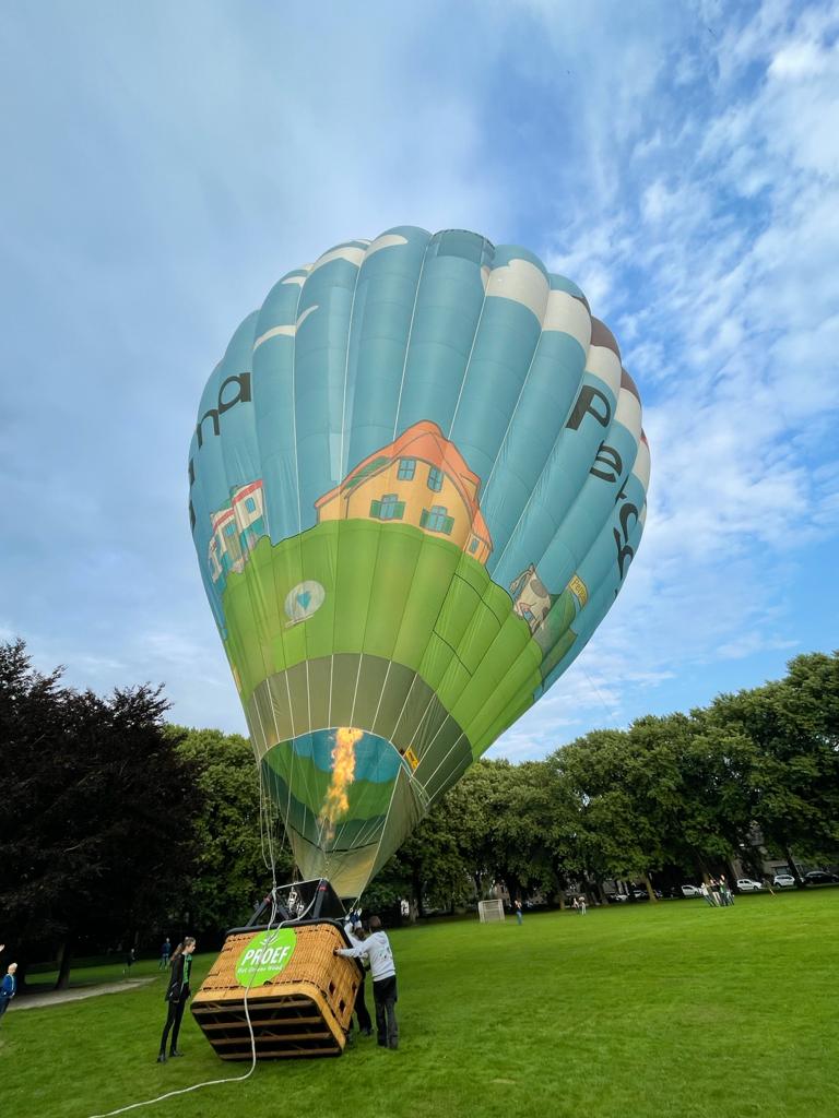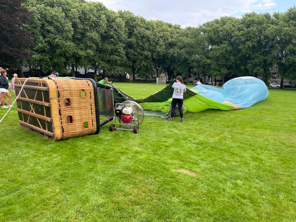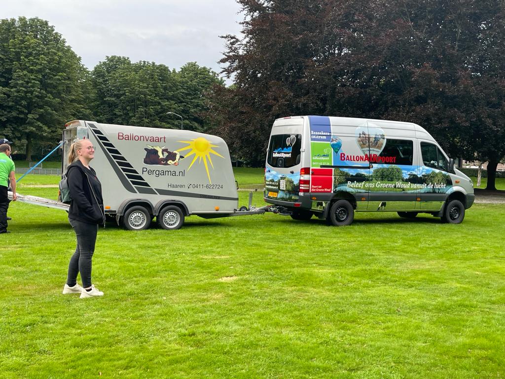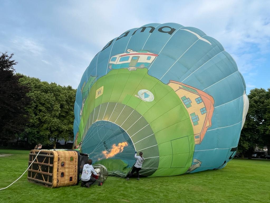 Met de auto naar Oisterwijk en daar in een park werd de ballon opgeblazen. De ballonvaarders wern daar uitgelegd, wat wel en niet te doen en hoe ze zich bij de landing moesten gedragen.