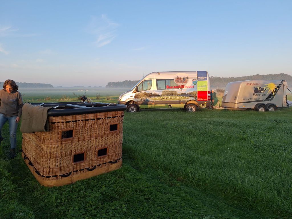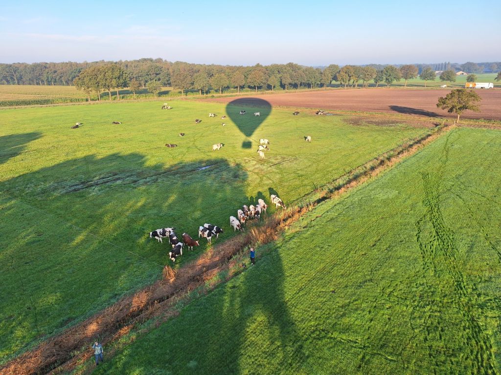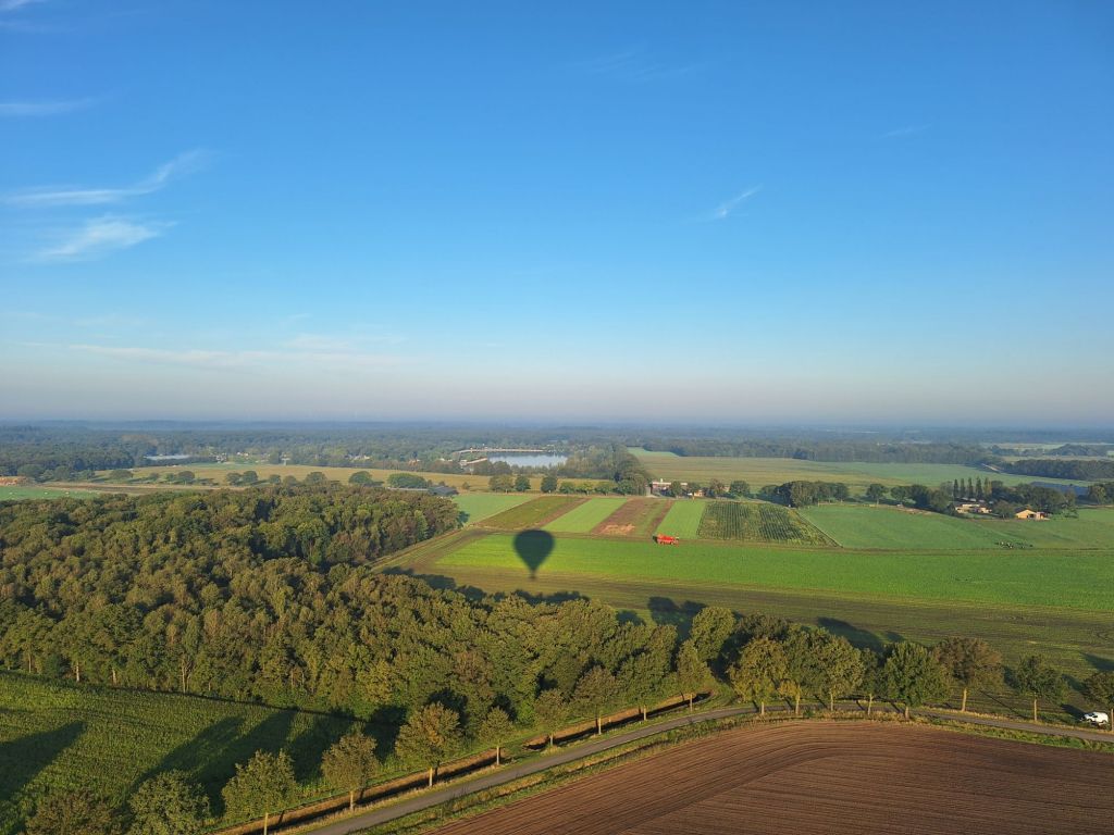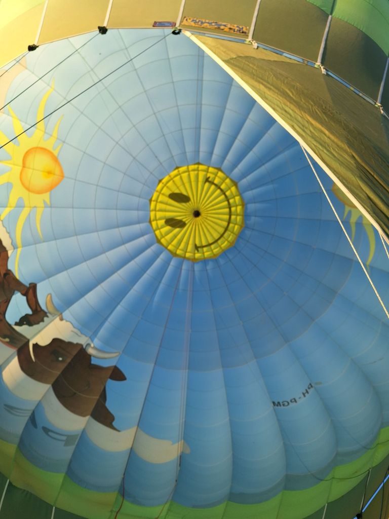 Ballon gereedgemaakt en om ongeveer 08.30 uur stegen we op. Omdat we in de aanvliegruite van vliegveld Eindhoven waren, mochten we niet hoger dan 150 meter varen.