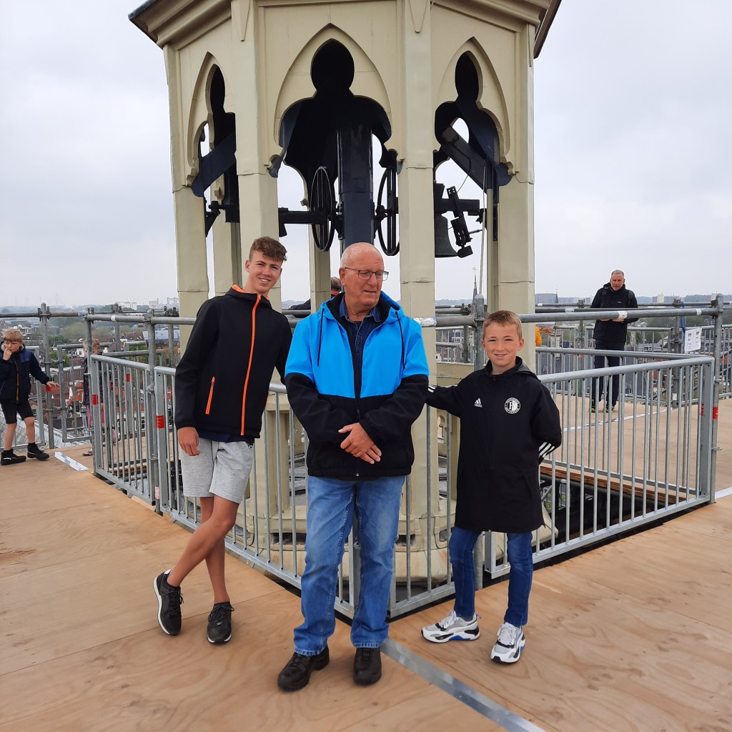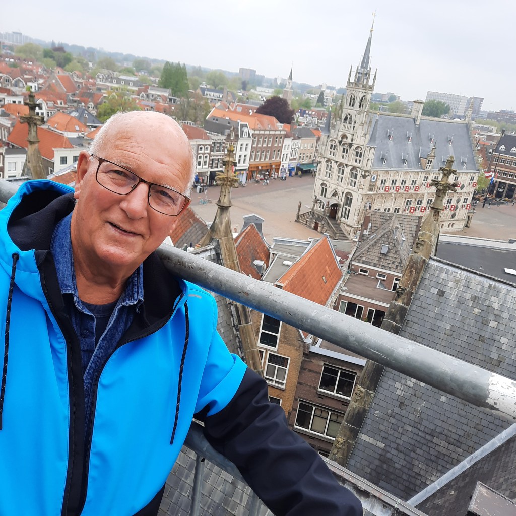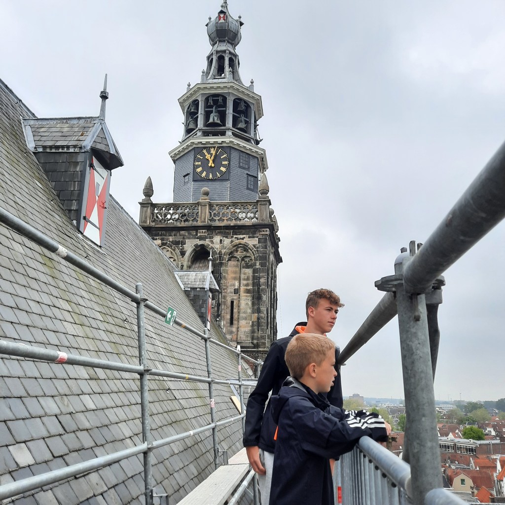 Op dinsdag 3 mei 2022 ben ik met Kasper en Timo naar Gouda geweest. We zijn daar eerst op het dak van de St. Jan wezen kijken. Dat was mogelijk gemaakt in verband met de viering van 750-jaar stadsrechten Gouda. Daarna zijn we de kerk in gegaan en hebben daar een mediatour door de St. Jan gedaan. Er waren prachtige schilderijen en altaarstukken uit het museum in de kerk geplaatst en je zag ook zogenaamd iemand een graf in de kerk graven, omdat er iemand begraven moest worden. Toen naar het museum Gouda en daar werden o.a. enkele kartons van de gebrandschilderde ramen getoond met daarnaast het gebrandschilderde raam of een deel ervan. Een prachtige tentoonstelling.