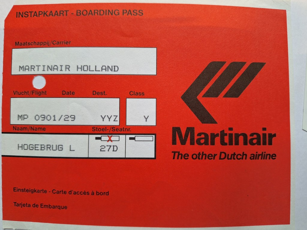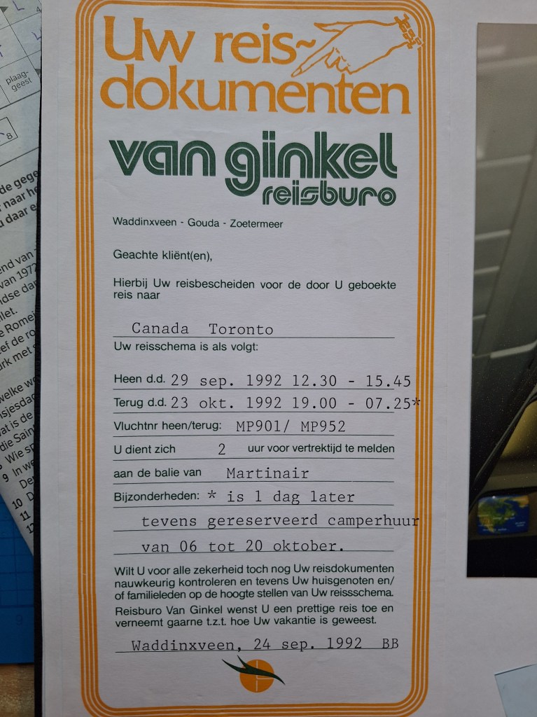 vr 23okt92: neef Fred bracht ons naar Toronto en het vliegveld en o 8 uur met het vliegtuig vertrokken naar Holland