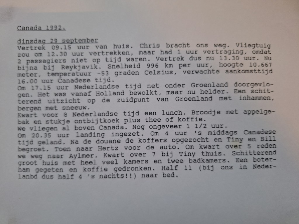 Op 29 september 1992 zijn we, Leny en Henk, samen met zus Gré van Henk, naar Canada geweest. Daar bezochten we de zus van moeder Hogebrug, tante Ger, die op 3 oktober van dat jaar vierde, dat zij 50 jaar getrouwd was met Arie Verboom.