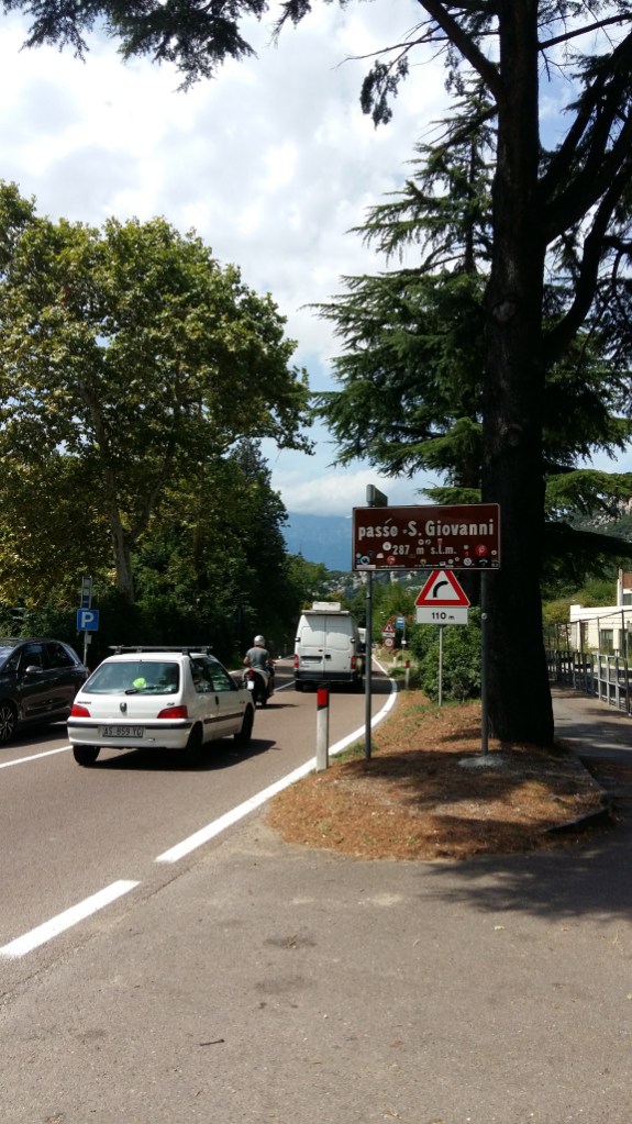 7 augustus was alles door de wind weer droog en om 07.45 uur vertrokken naar Auer (Ora). Stukken 3 – 5%, maar soms ook 10 – 12% stijgen, dus nog al eens van de fiets af. Rond 13.00 uur in Auer. Bij een Nederlands echtpaar mijn telefoonoplader weer geladen.