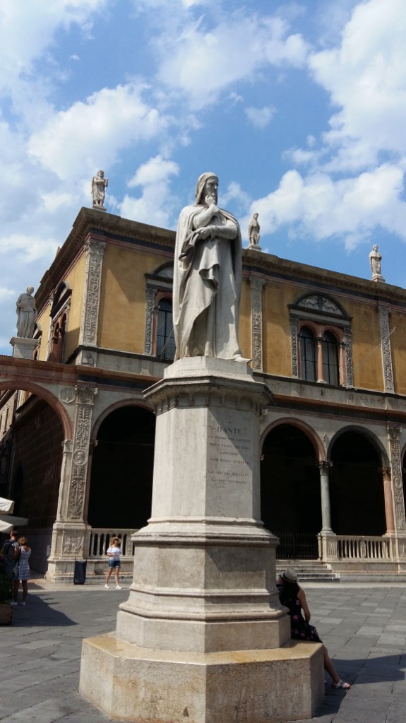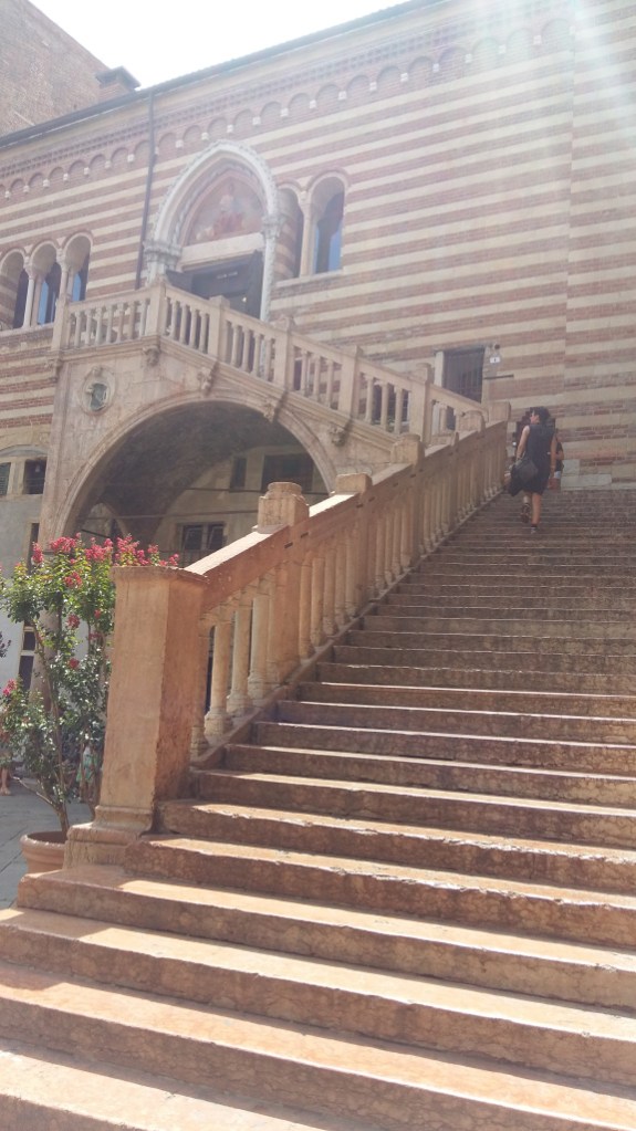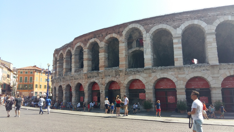 9 augustus van het Gardameer naar Verona via Bussolengo. Aangegeven camping was alleen voor campers, dus door naar het VVV bij de Arena. Camping Castel San Pietro ligt bij Castel San Pietro, boven op een van de bergen rond Verona. Flink klimmen dus. Tentje neergezet om 12.15 uur en na het douchen naar beneden de stad in.