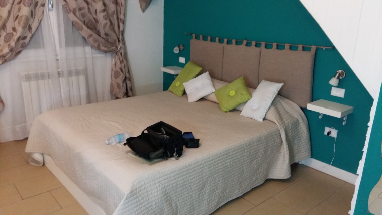 Zaterdag 12 augustus op weg naar Bologna. Opnieuw vlak, maar de Apenijnen komen wel duidelijker in het gezichtsveld. In Bologna de camping (klein, naast onbemand benzinestation) niet kunnen vinden en door naar Botteghino di Zocca. Daar wat gedronken in klein cafeetje en gevraagd naar agroturismo. Eigenaar belde en zei dat baas van Agroturismo Ca’ del Rio een dame was en ……..een heel mooie. Er was plek, dus circa 1 km de heuvels in. Gelijk bij aankomst wat gegeten, dat bleek maar goed ook. Nadat ik mijn kamer had opgezocht en gedoucht en wat gelezen, bleek het hele complex uitgestorven, ook de bar en het restaurant. Geen mens te bekennen. Maar een beetje van mijn noodvoorraad eten aangesproken met een kop thee, die ik op de kamer kon zetten.