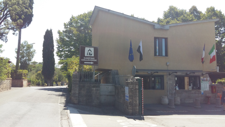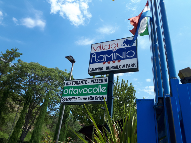 Vrijdag 27 juli kwart over 7 op pad. Gelijk van het meer af klimmen en duwen dus. Ondanks dat ik in de buurt van Rome was, deed dat niets af aan het klimmen en dalen. Tot Prima Porto de route goed te volgen, daarna zoeken en vragen. Uiteindelijk toch het eindpunt van mijn fietstocht de camping Village Flaminia aan de rand van Rome gevonden. Grote camping met zwembad, bar en restaurant. Tentje neergezet, Leny gebeld dat ik er was en daarna bij het zwembad een biertje en een liter koud water gedronken.