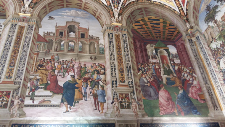 Vrijdag 18 augustus een dagje Sienna. Eerst lopend naar het station om te kijken waarvandaan de bus van Cycletours naar Nederland vertrekt. Dat bleek aan de achterkant van het station te zijn, aan de kant van de camping. Het hele station verder bekeken en met alle roltrappen zo’n 8 niveaus hoger in de stad uitgekomen. Terug naar de camping en buskaartjes gekocht en met de bus terug naar de stad. Eerst de basiliek S. Domenico bezocht en toen naar de Dom. Dat betekende meer dan een half uur in de rij voor een kaartje. Combikaart gekocht, zodat ik een paar attracties kan combineren. Heel veel foto’s gemaakt in de Dom, wat een schitterend gebouw. Als laatste het museum Cirico de Sienna (stadsmuseum) bezocht. Veel muurschilderingen van de oorlog van 1813. Terug op de camping kwamen twee Nederlandse dames aangefietst. Die gaan ook morgen met de bus van Cycletours mee. Hebben in de omgeving van Sienna gefietst. Op de camping staan nog twee Nederlanders met fietsen, die ook mee teruggaan. Ook in de omgeving gefietst.