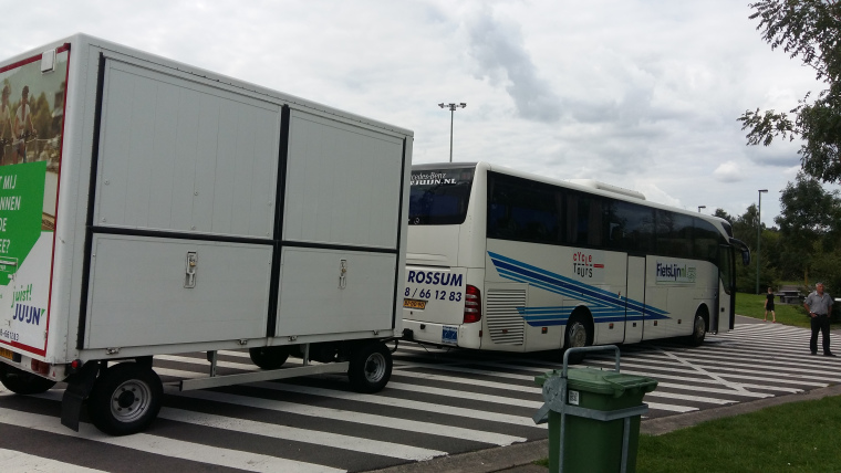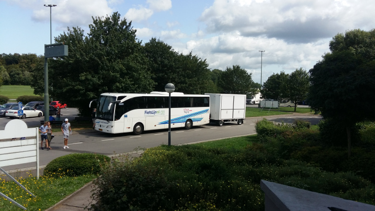 Zaterdag 19 augustus. Na het ontbijt tentje opgeruimd en spullen herpakt. Rugzakje voor onderweg gevuld en toen voor de laatste keer met de bus naar het centrum. Daar rondgelopen, wat gedronken en gegeten. Terug op de camping een biertje gedronken en met een Italiaan zitten praten. Hij in zijn beste Engels en ik in mijn beste Italiaans. Hij een motorfan met een Triumph motorfiets. Nog voor de laatste keer heerlijk gedoucht en zo rond kwart over 9 naar het station. Al snel kwamen daar ook de andere 4 Nederlanders aan en daarna nog een moeder met dochter en nog 2 dames. Tassen en voorwielbagagedrager er af en nog een mevrouw geholpen haar fiets aan te passen aan het vervoer. Bus kwam keurig op tijd en nadat alles ingeladen was om 23.15 uur op weg. Bus nog niet voor de helft vol, dus ruimte genoeg om ruim te zitten. Een paar keer eruit om te eten en te drinken en aardig geslapen. Terug via de St. Gotharttunnel en Luxemburg. Om circa 20.00 op zondag 20 augustus in Utrecht uit de bus. Bagagedrager en tassen er weer op en naar het station (100 meter). Kaartje voor de fiets gekocht en ingecheckt. Trein richting Den Haag van 20.30 uur en om 20.48 uur in Gouda. Leny regelmatig geïnformeerd over de stand van zaken. Laatste stukje naar huis in Zevenhuizen fietsen en daar arriveerde ik 21.35 uur. Bij gekletst, wat gedronken en heerlijk gedoucht. Alles was (ook dit jaar) weer goed gegaan.
