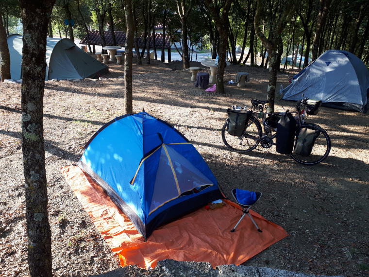 Woensdag 25 juli al weer vroeg op pad om de warmte vanmiddag voor te zijn. Temperatuur rond de 34 graden Celsius. Op een kilometer of 12 vóór het einde van deze rit kon ik het (grootste kratermeer van Europa) Lago di Balsena al zien liggen. Er te komen was nog een heel ding. Een superslechte afdaling, zo’n slechte weg nog nooit gezien en 3 kilometer vóór de camping een helling van 300 meter van 20% stijging!! Moed verzameld en het koste 4 keer stoppen en op adem komen voordat ik boven was. Om 12 uur op camping La Perla del Lago. Na tentje neerzetten en douchen 2,5 km. gewandeld naar het stadje en daar heerlijk gegeten.
