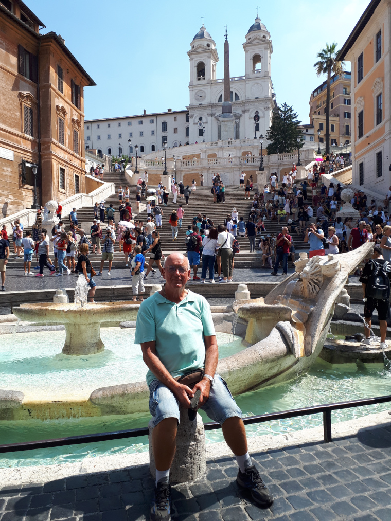 Zaterdag 28 juli kaartje voor het openbaar vervoer gehaald op de receptie en met de regionale dan wel stadstrein naar Piazzale Flaminio, die grenst aan het Piazza del Popolo. Daar vandaan te voet naar de Trevi Fontijn. Schitterende fontijn, waar het al aardig druk was. Door naar de Spaanse Trappen. Ook daar druk. Op de terugweg nog naar het museum van Leonardo da Vinci aan het Piazza del Popolo. Heel erg warm in Rome en wat opvalt is overal militairen en politie voor de veiligheid van de inwoners en de toeristen. Terug naar de camping.