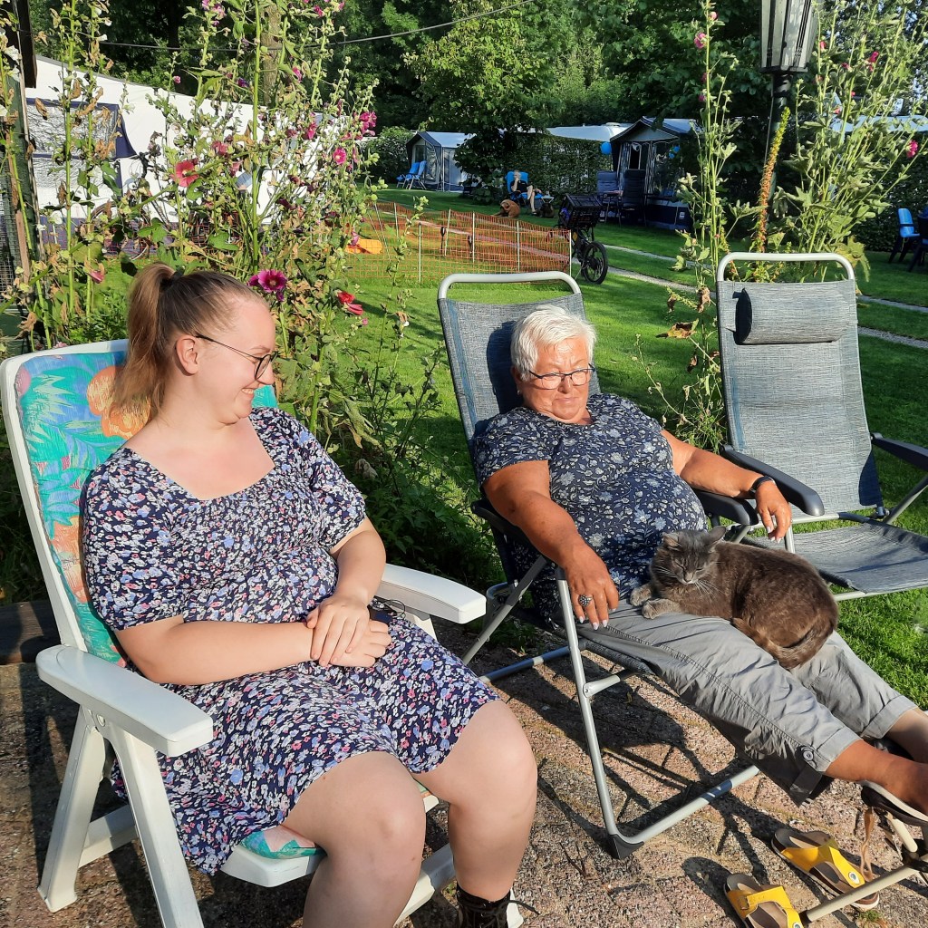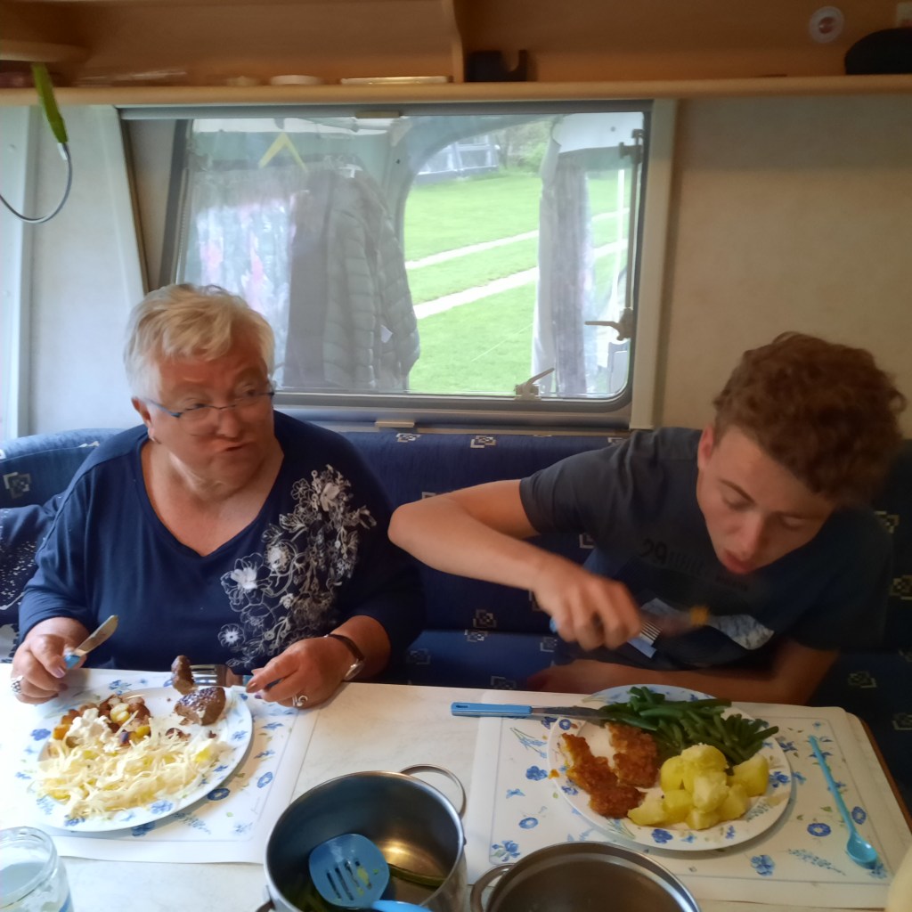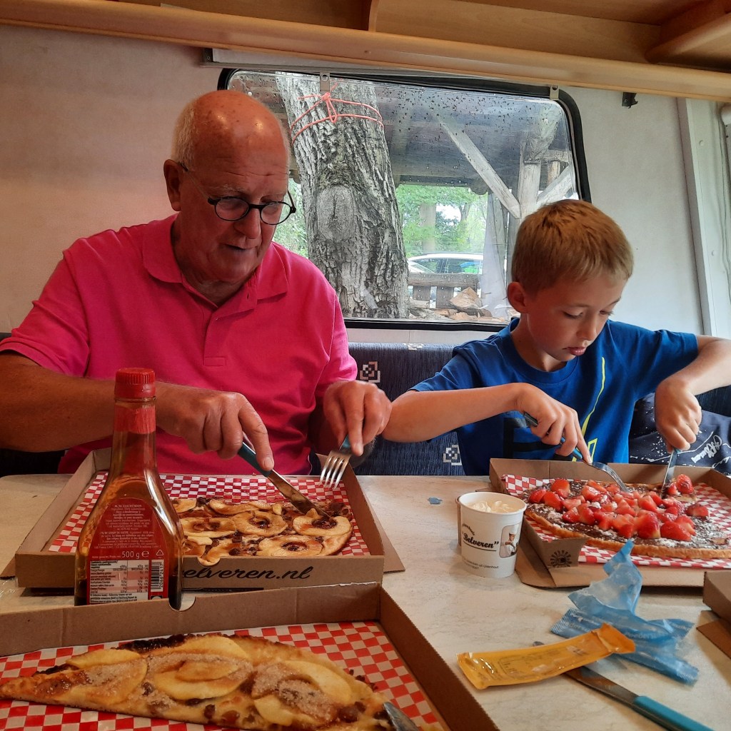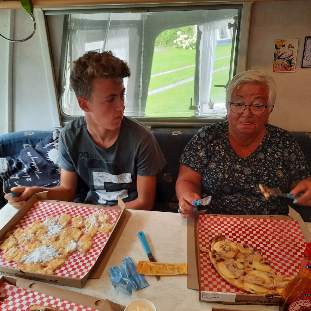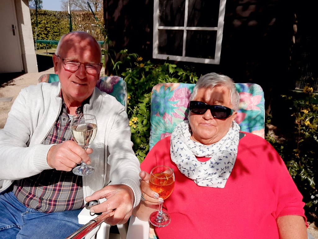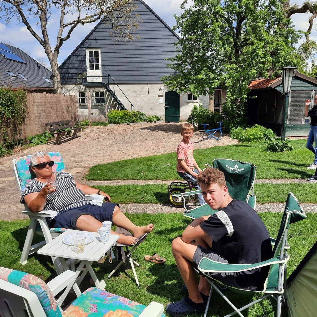 In verband met ons 55-jarig huwelijk in april 2021 kregen we van de kinderen een nieuwe voortent aan de caravan. Hier een foto die tijdens de verjaardag van Leny is gemaakt.