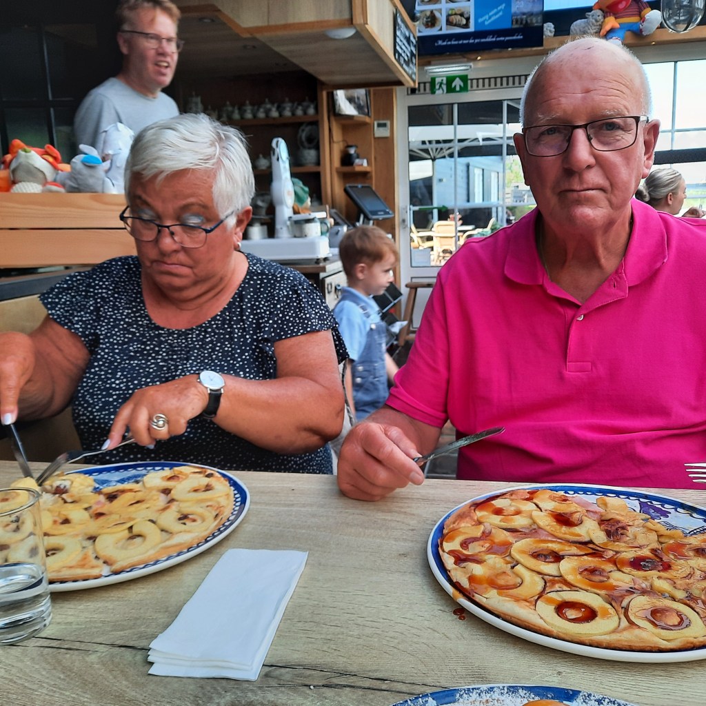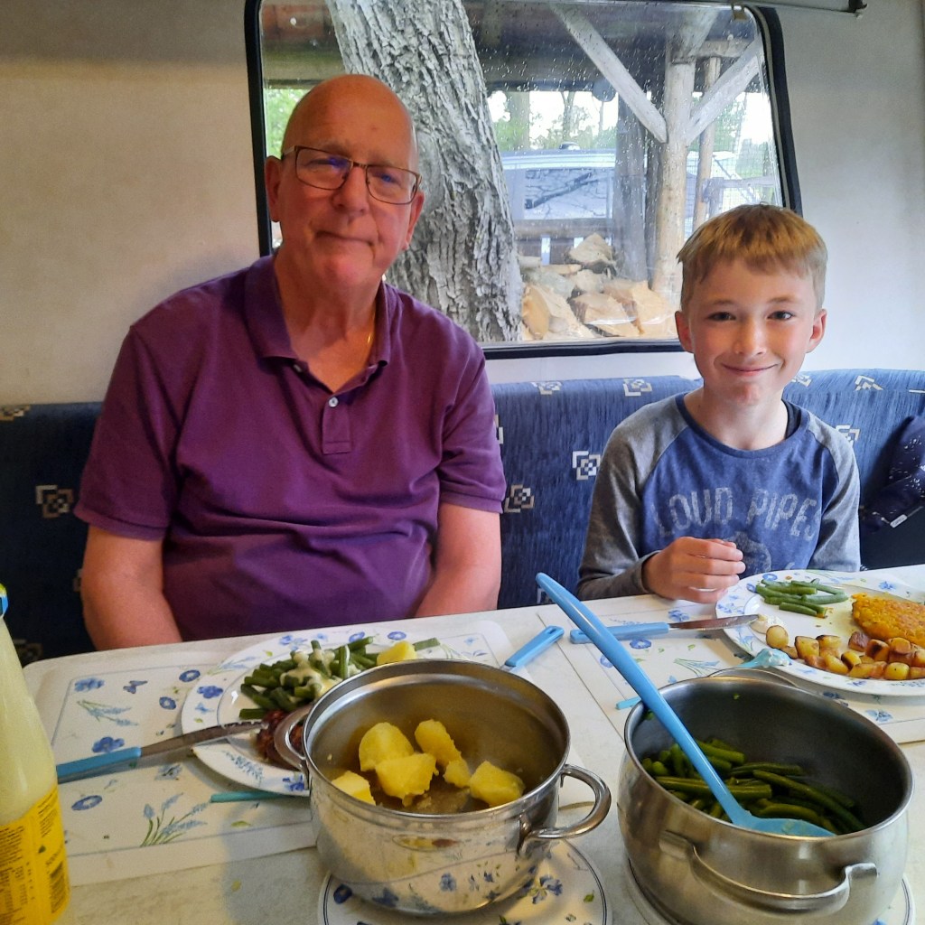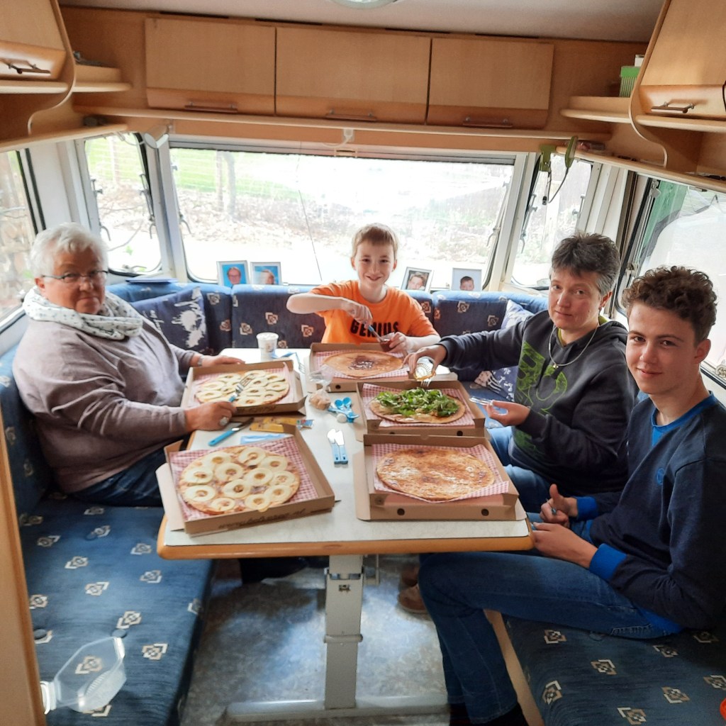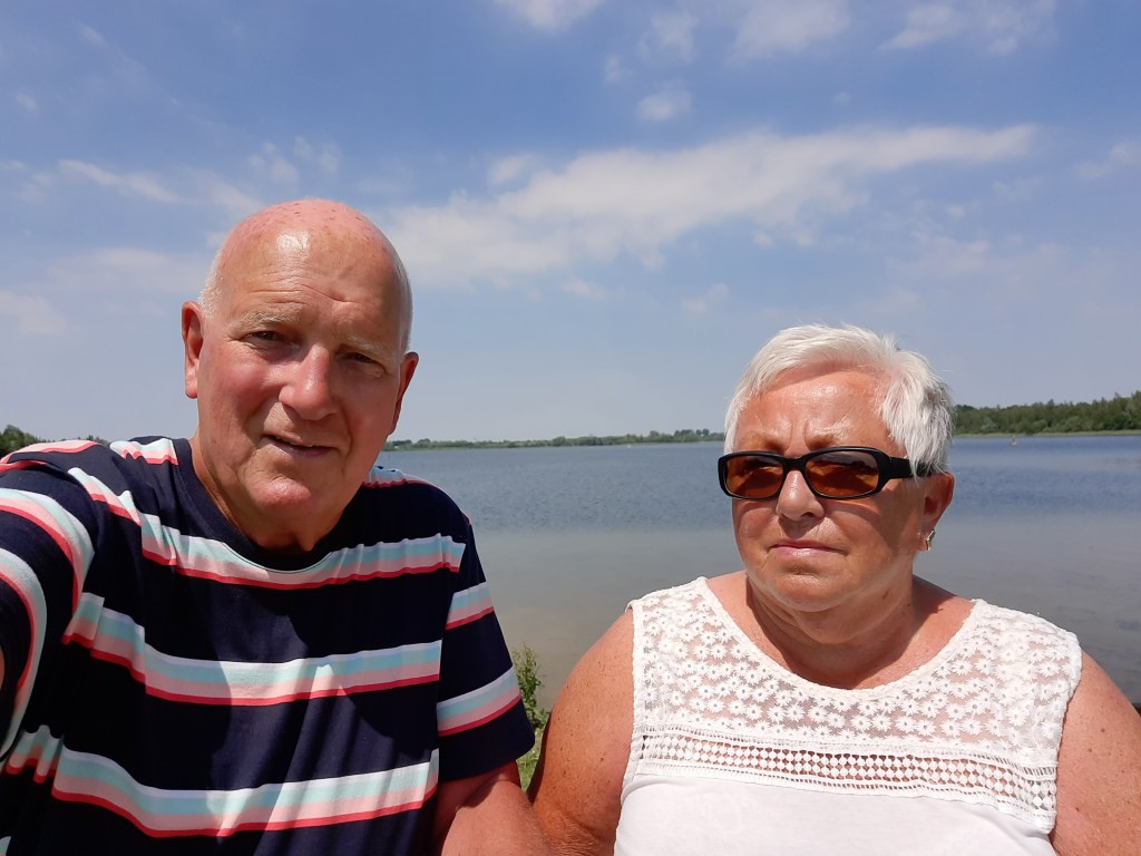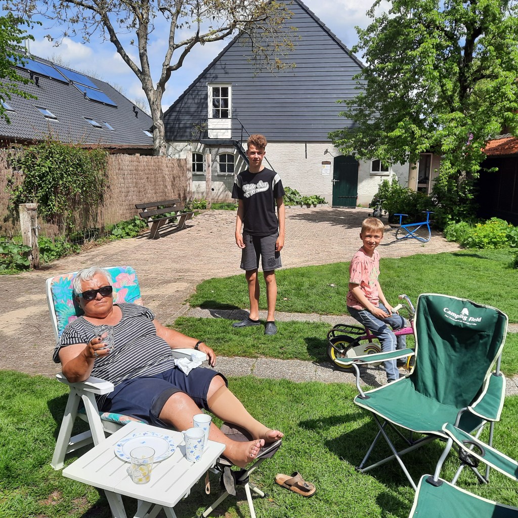 In verband met ons 55-jarig huwelijk in april 2021 kregen we van de kinderen een nieuwe voortent aan de caravan. Hier een foto die tijdens de verjaardag van Leny is gemaakt.