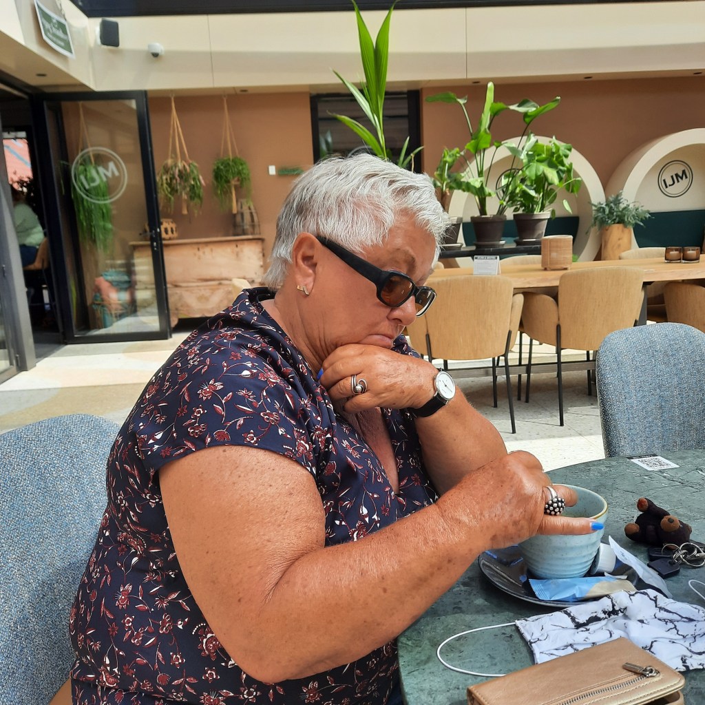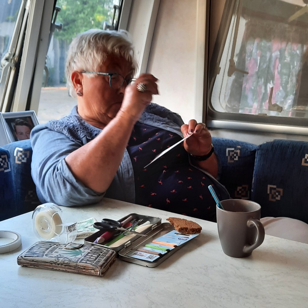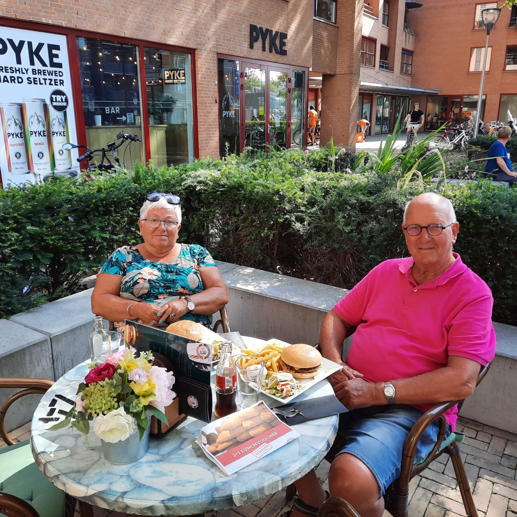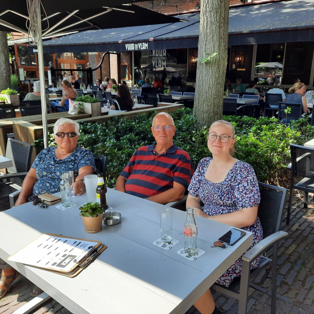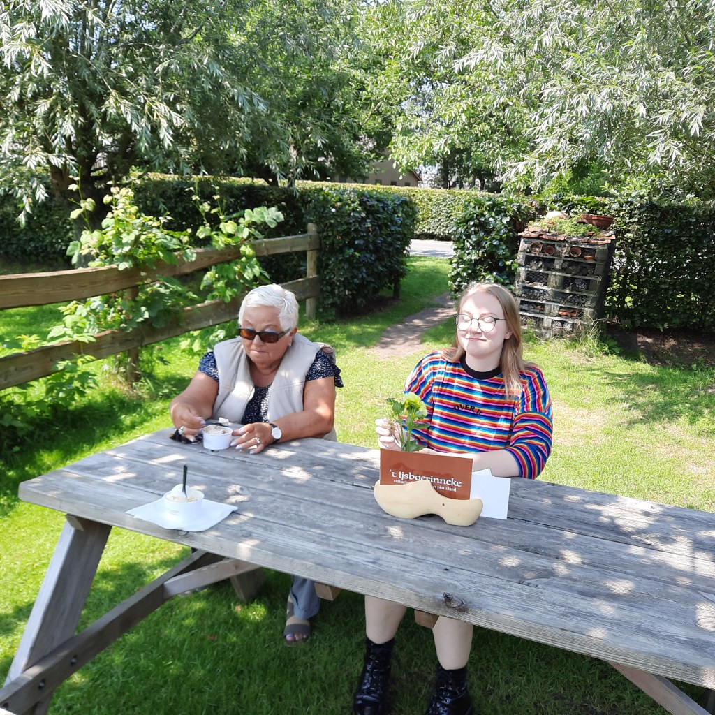 In verband met ons 55-jarig huwelijk in april 2021 kregen we van de kinderen een nieuwe voortent aan de caravan. Hier een foto die tijdens de verjaardag van Leny is gemaakt.