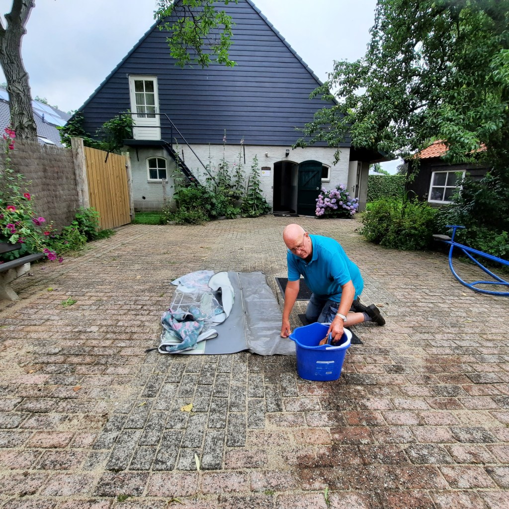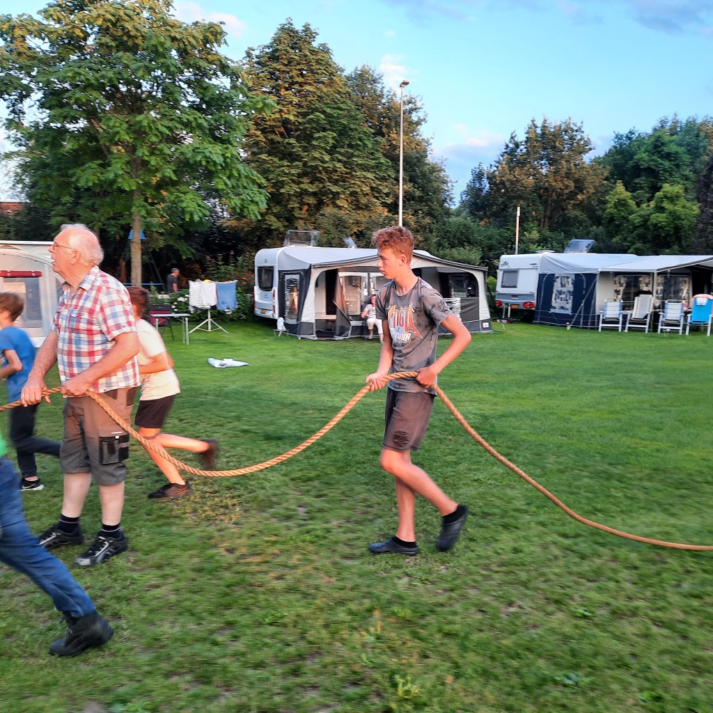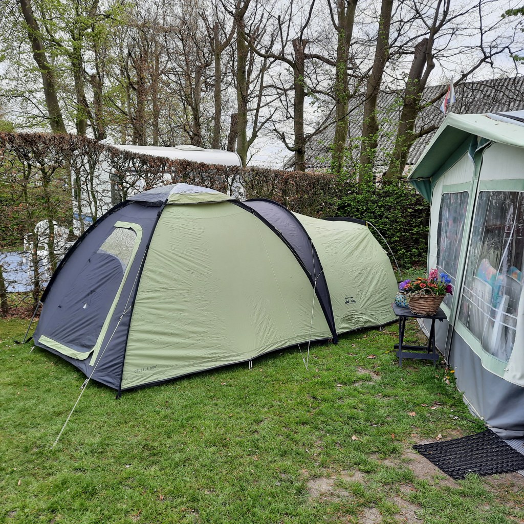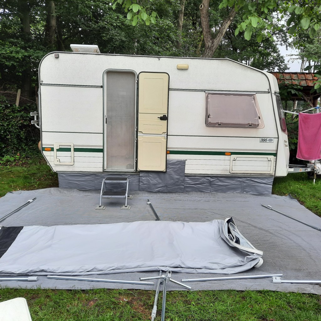 Met prachtig weer en rond 24 graden Celsius werd de caravan neergezet en de voortent er aangemaakt.
