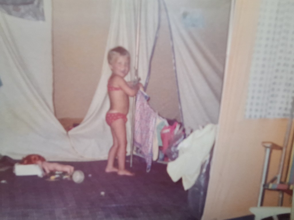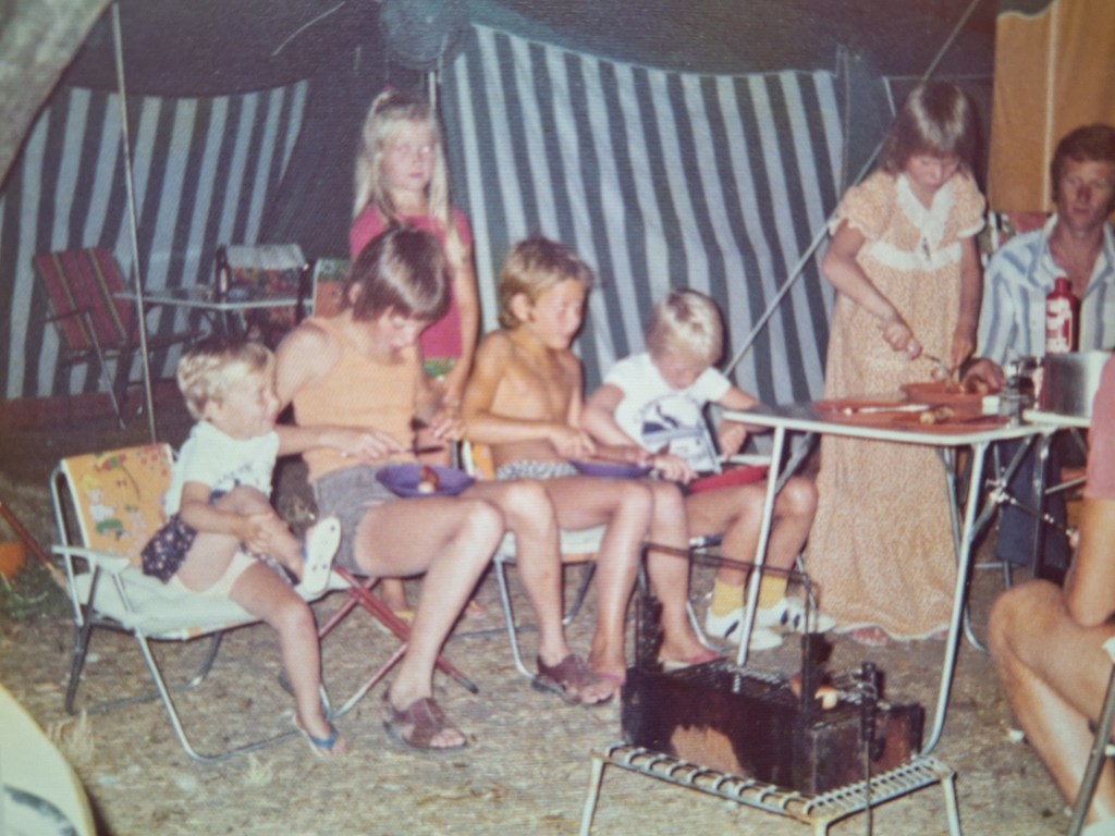 Tentje neergezet en een heerlijke vakantie gehad. Via een tunneltje vanaf de camping kon het meer bereikt worden en er was een klein strandje, waar het water van het meer ondiep was.