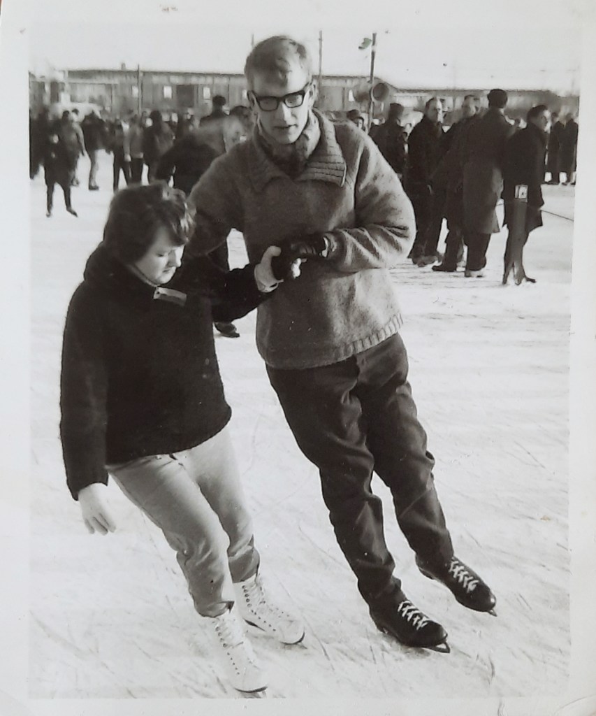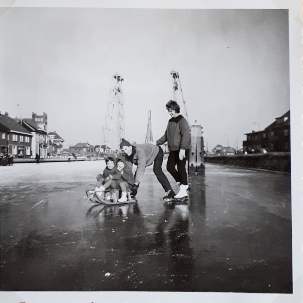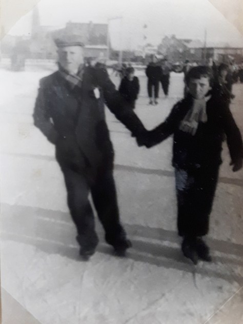 Leny met haar vader schaatsen op de Petteplas in Waddinxveen