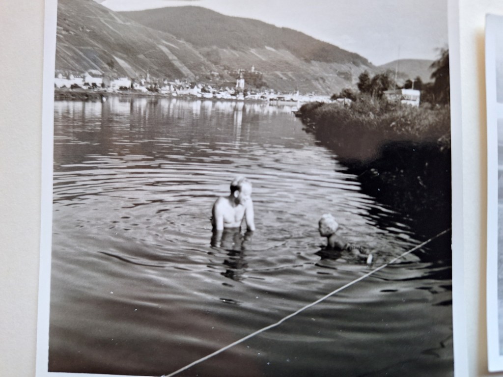 Ook dit jaar weer in de Moezel gezwommen, er op gevaren en gewandeld naar het stadje Zell, waar we ook weer de Zeller Schwarze Katz wijn hebben gekocht.