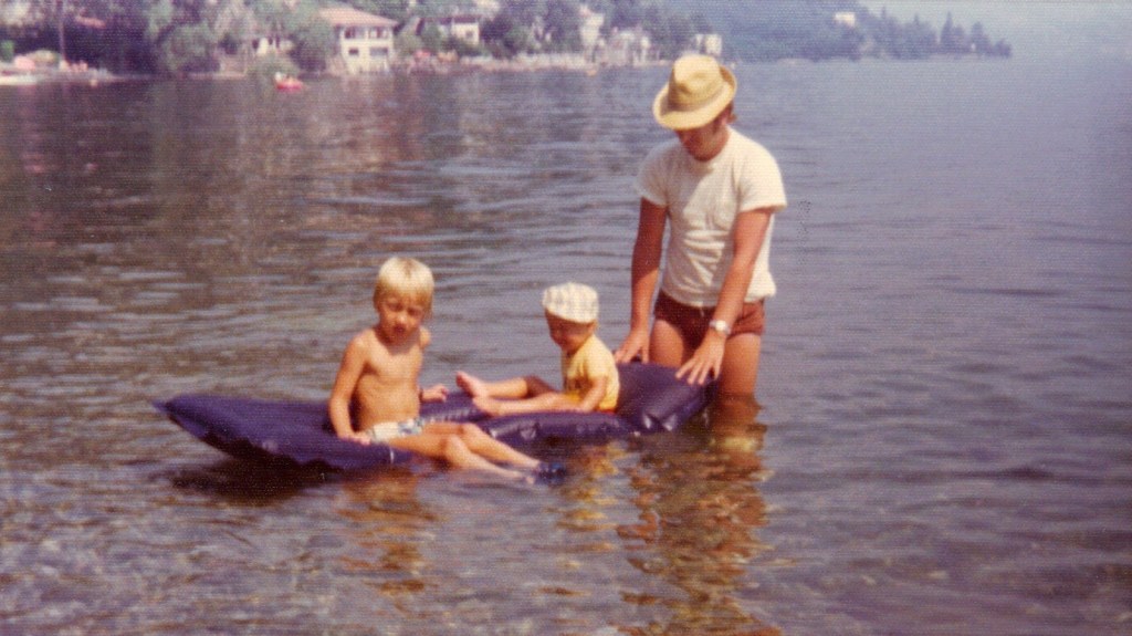We hadden dat jaar een groene opblaas rubberboot bij ons.